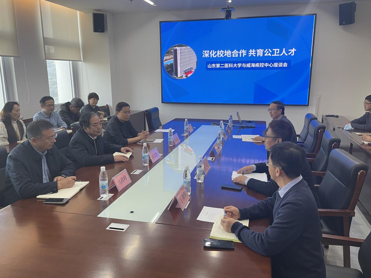 威海市卫生健康委员会党组副书记、副主任,市疾控中心党委书记、主任杨正辉对郑文贵一行的到访表示热烈欢迎。市疾控中心副主任于洋详细介绍了中心在重大疾病防控、科研创新突破、实践教学平台建设等方面的工作进展,同时对该校实习学生的学习态度、专业素养及实习表现给予高度评价。